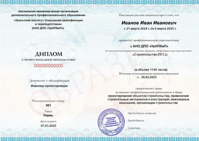 - Профессиональная переподготовка в сфере строительства (ПГС) с выдачей диплома.