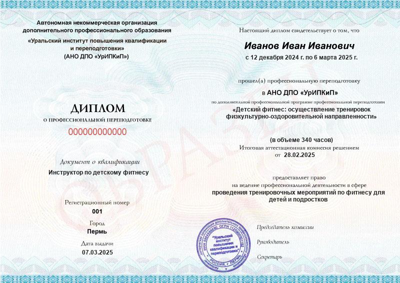 Курс обучения Детский фитнес: осуществление тренировок физкультурно-оздоровительной направленности (340ч)