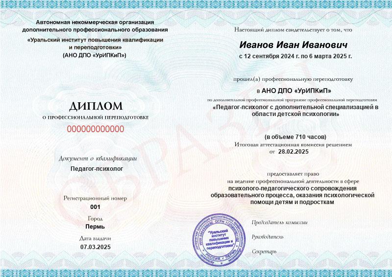 Курс обучения Педагог-психолог с дополнительной специализацией в области детской психологии (710ч)