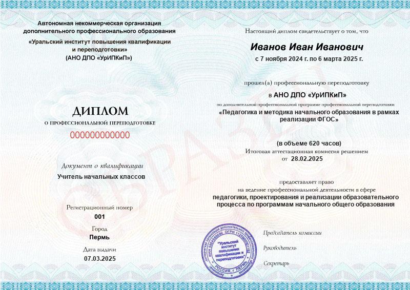 - Образец диплома о профессиональной переподготовке.