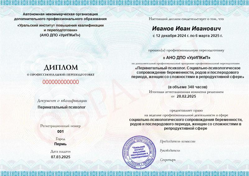 Перинатальный психолог. Социально-психологическое сопровождение беременности, родов и послеродового периода, женщин со сложностями в репродуктивной сфере (340ч)