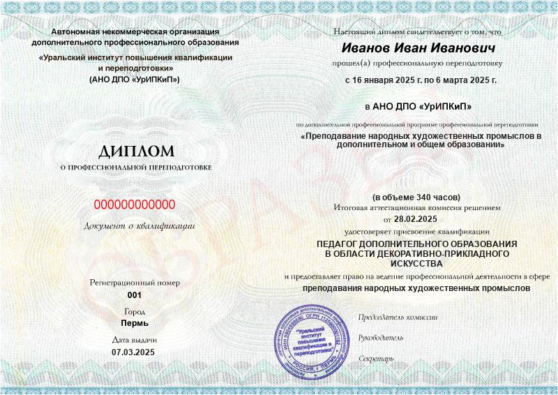 - Образец диплома о профессиональной переподготовке.