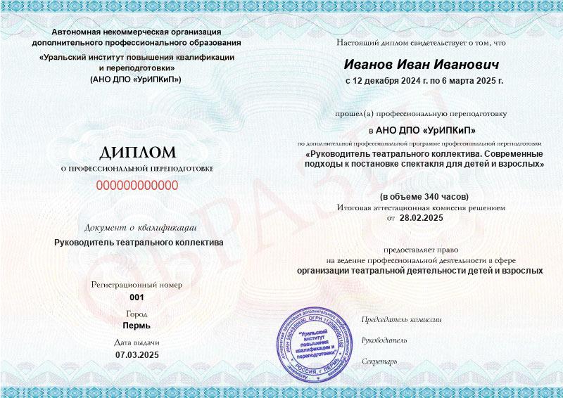 Да, дипломы и удостоверения оформляются в соответствии с действующим законодательством РФ. Документы печатаются на специальных бланках, заверяются печатью АНО ДПО «УрИПКиП».