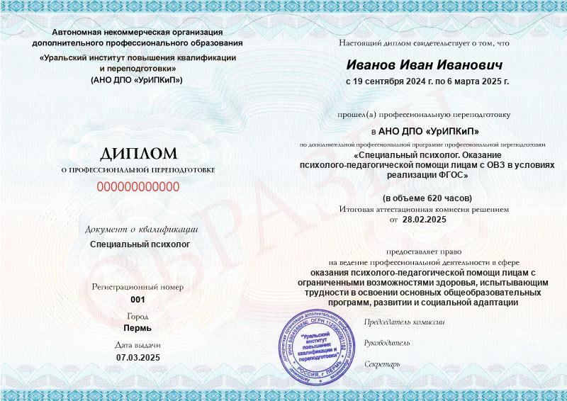 Курс обучения Специальный психолог. Оказание психолого-педагогической помощи лицам с ОВЗ в условиях реализации ФГОС (620ч)