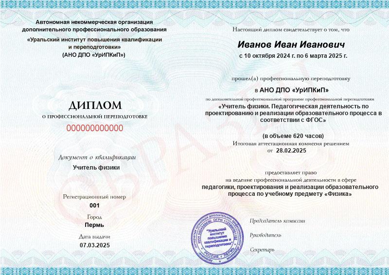 • Вы получаете диплом о профпереподготовке, дающий право преподавать физику для учащихся основной и средней школы;