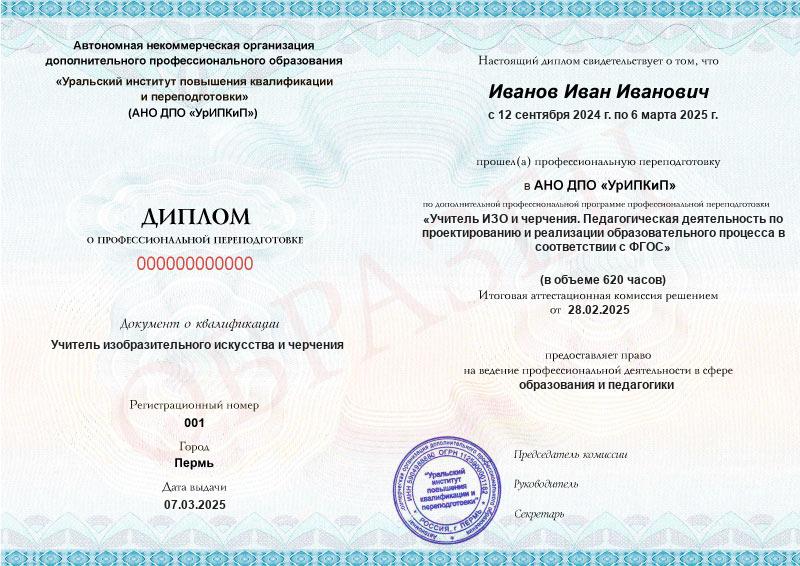 Учитель ИЗО и черчения. Педагогическая деятельность по проектированию и реализации образовательного процесса в соответствии с ФГОС (620ч)