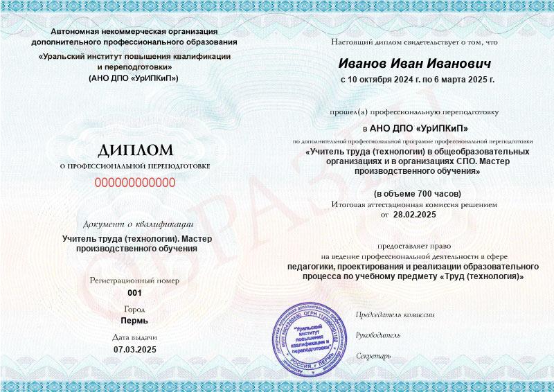 Курс обучения Учитель труда (технологии) в общеобразовательных организациях и в организациях СПО. Мастер производственного обучения (700ч)